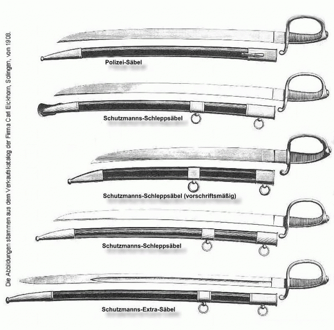 Seit dem 14. Juni 1905 war den Schutzmännern mit einer zehnjährigen vorwurfsfreien Dienstzeit in der Schutzmannschaft gestattet, den Wachtmeistersäbel mit goldenem Portepee zu führen …